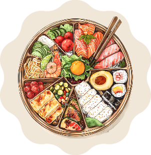 A colorful assortment of hand-rolled sushi made with crisp, garden-fresh vegetables. Light, refreshing, and perfect for those who love healthy, meat-free Japanese cuisine.